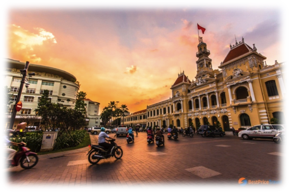 到越南最大城市胡志明市旅游必去的八个地方这是胡志明市的政府大楼,全称胡志明人民委员会大厅,是一座具有浓烈法国风格的建筑,于1902年兴建,在1908年落成。市政厅只有二层,线条简洁,屋顶为红色,外墙为黄色,在蓝天白云的映衬下显得格外明艳。
