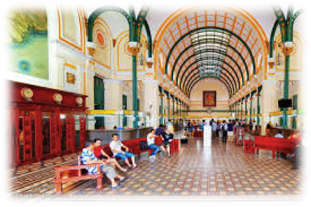 央邮局位于胡志明市市中心第1郡,与西贡圣母大教堂相邻。这是胡志明市法殖民时期遗留下的邮局,建于19世纪末,由法国建筑师古斯塔夫·埃菲尔(Gustave Eiffel)设计,充满了浓浓的法式风情。