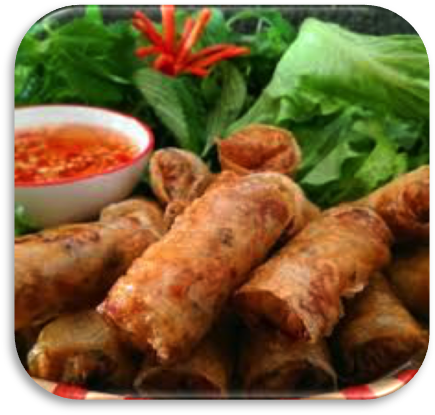 越式春卷的餡一般用粉絲、香菇、豬肉、雞蛋和蔬菜絲攪拌而成,再用米粉做成極薄的春卷皮,包上餡後放入熱油鍋中炸至酥黃。食用時可將炸好的春卷包入生菜,沾上魚露、蒜末、辣椒醬、醋等蘸料,就可以品嘗到酸、甜、鹹、辣等不同的味道。當然,也可根據個人喜好不包生菜直接沾醬食用。