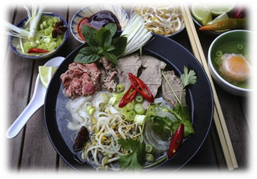 牛肉河粉是越南人最喜歡吃的一道美食,味道鮮美,價格實惠。河粉中的牛肉選用的是黃牛肉,使用的米粉也是用優質大米製作而。先將一大塊精選黃牛肉加上各種調味料後下鍋煮熟,然後切成薄薄的小塊,將米粉在開水鍋中煮熟,加人牛肉、牛肉湯和各種調料,非常美味!