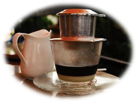 滴漏咖啡是用一種特殊的滴漏咖啡杯,底下有玻璃杯接著,先在滴漏裡面放上咖啡粉,壓上一片有洞孔的金屬片,再加入熱水沖泡,於是咖啡就滴滴答答地滴到底下的玻璃杯內,滴完一杯咖啡大約需要10-20分鐘,最後加奶加伴侶。看著咖啡在眼前滴著,就像沙漏在計時,咖啡也是有性格的,這滴漏咖啡就像溫和悠閑的越南人。