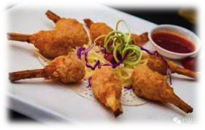 虾饼是越南一道有名的小吃。虾饼的做法是将加了调味料的面糊裹上新鲜的大虾,放入油锅中炸,出锅后香味扑鼻,吃起来,香酥可口。