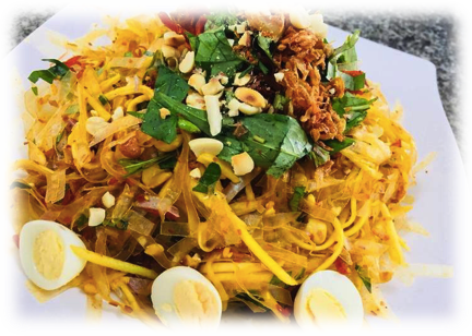条状的米纸遇到液体会呈现出黏黏的特性,充分地将酱汁吸收后和蔬菜一起入口就更美味了,超有特色的口感绝对仅能在越南吃得到呢。