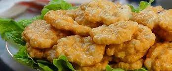 猪皮刮丝,粘粉由黄豆、大米和花生磨成炒过火制成,全部混合在一起即可。这个菜蘸上特制酱汁味道会更好。酱汁是把切碎的辣椒、大蒜、生姜和柠檬汁搭配上淡鱼露,再加上柠檬叶切丝搅拌均匀,酱汁会更香,更美。这么简单的农村家常菜就变得奇特,受到广大游客的喜爱。