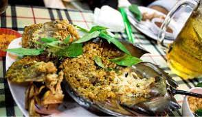 之前吃鲎的人不多;但是现在,鲎慢慢变成了下龙湾的特产。鲎可以用很多方法来烹调的,最好吃的可能是糖醋炒鲎了。材料有:香茅、辣椒、假蒟、鲎、高良姜、蒜头、其他调味料...等。鲎肉比螃蟹还更加香甜,酱料有酸豆的酸酸、甜甜、辣辣、咸咸非常美味。