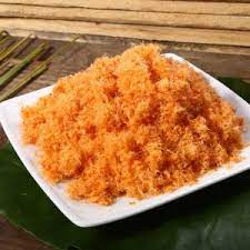 下龙湾里最适合当礼物送给家人的菜品(虾肉松)。虾肉松以香味芬芳,虾肉柔软细腻有弹性而闻名,没有像其他松肉老韧难以嚼碎。特别是,这道菜的营养价值高于普通松肉,富含丰富的蛋白质、钙、磷、镁等营养元素,因此非常适合儿童。