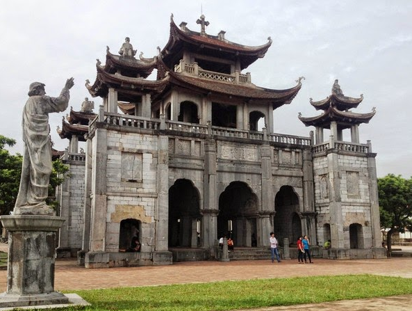 坐落在近22公顷的土地上,发艳教堂于十九世纪建成,是融合了东西方文化和建筑艺术的一座石头教堂。发艳教堂是由当地居民称为六爷的彼得陈陆用三十四年时间建成的教堂群体。六爷先后建设了由一座大教堂、五座小教堂、一个方亭、一个池塘和三座名为露德、生日、髑髅的人造山组成的大型教堂群体。这是非常具有特色的一座建筑群体,兼具西方哥特式建筑和东方建筑两种风格,成为一座纯越式教堂。教堂出入口按西方哥特式建筑样式建成,包括越南在内的东方建筑风格则体现在教堂的梁柱结构和各种精致柔美的图案上。