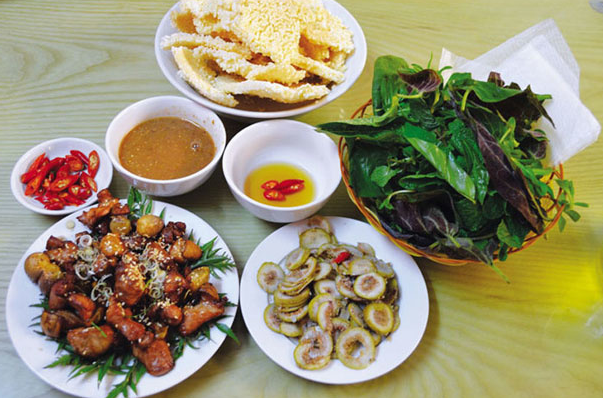 “宁平山羊肉”可谓闻名全越南。2012年,宁平山羊肉配锅巴正式获越南纪录中心列入“越南50道特产美食”。光是这一点就足够令国内外游客蠢蠢欲动,想要一尝这道宁平省的特色美食了。当游客坐船游览长安名胜群体,拜订或三谷碧洞时,可以轻易看到高山上若隐若现的白色身影。那便是常年居住在山上、吃新鲜绿草的野生山羊。其中,也有一部分是当地居民故意放养的,需要时再组织围捕。野生山羊肉的味道鲜美,比家养羊肉更有营养。由于常年放养在山野间,运动量充足,因此肉质紧实、肌理分明,肉味浓郁。加上常年吃山上的草药植物、喝天然的山泉水,故而质量上乘、味道清香,是家养羊无法媲美的。