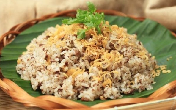 以蚂蚁蛋做成的特色美食,名为蚂蚁蛋糯米饭。宁平省的蚂蚁蛋主要集中在儒关县的石灰岩山洞,当地居民将收集好的蚂蚁蛋带回去清洗干净,加入调料腌制入味,然后拿去炒熟。再配着糯米饭、炸干葱一起食用,味道新奇,美味无比