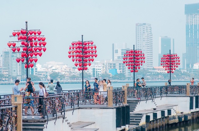 This is a bridge simulating the famous love bridges in France and European countries. The bridge is located on Tran Hung Dao Street, near the top of the Dragon Bridge and the dragon carp statue. This place is free for visitors to visit. The bridge has an arc shaped about 70 m long, 6 m wide, facing the middle of the river and has plenty of space to see the beauty of the Han river banks.