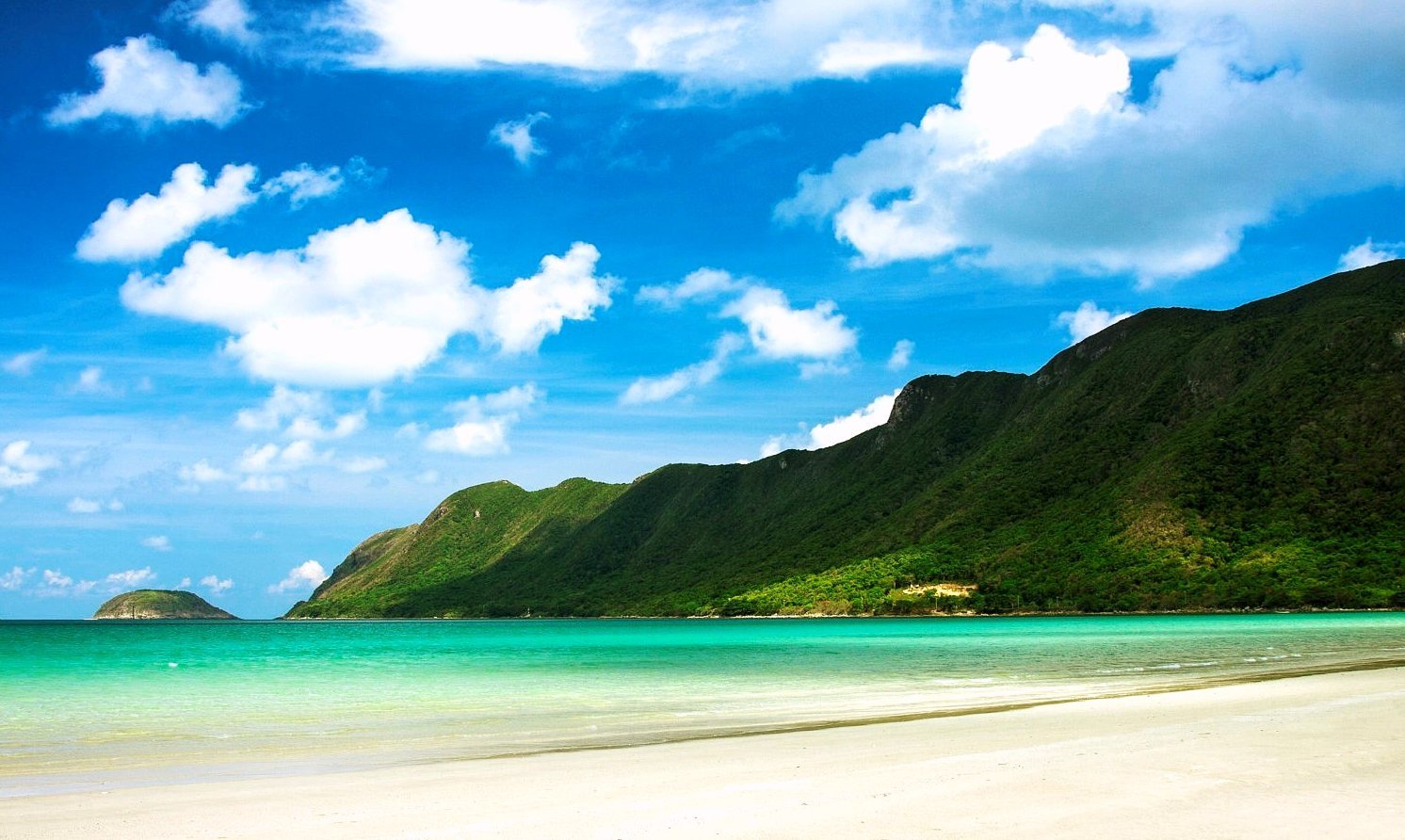 The gentle Ho Tram beach with the long stretch of sand, fine white and turquoise water basking in the brilliant golden sunlight. It makes the natural landscape more brilliant, enchanting many tourists. The sand in Ho Tram is also very special, it is not as yellow as the sand in Vung Tau beach but slightly turns pink, adding a little light under the golden sunlight and stands out in the blue sky.
