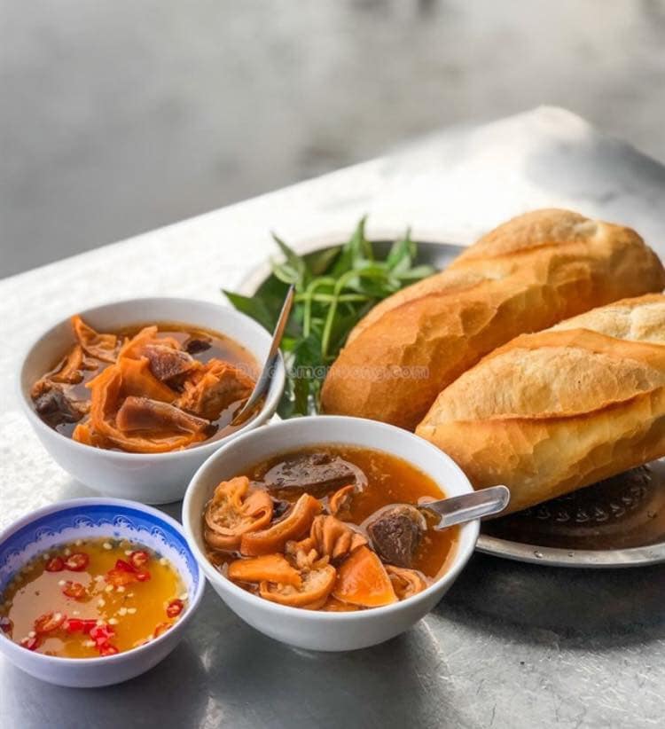 越式的许多料理都是咸咸酸酸,像是越式牛杂。 Phá lấu当中除了卤的软嫩的牛杂,还加入了大量的番茄,有点类似…台湾的番茄牛肉!只是汤汁的味道不太一样。用面包沾着汤汁吃,相当刺激食欲。