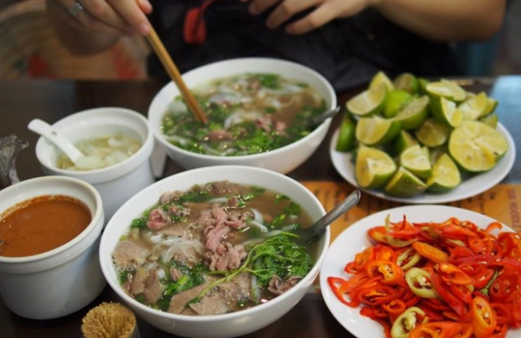 Phở là món ăn đầu tiên mà bạn nên thưởng thức khi đến Hà Nội. Những quán phở nổi tiếng như: Phở gánh ở Hàng Trống, quán là một gánh hàng rong nhỏ, đặt ở trên vỉa hè, chỉ có một chiếc ghế nhỏ, quán chỉ mở cửa buổi chiều. Đây là quán đã có từ rất lâu, mặc dù không có chỗ ngồi ăn thoải mái nhưng người đến quán đông nghịt, phải xếp hàng và chờ rất lâu.