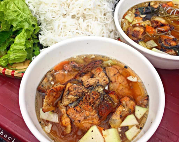 Là món ăn mà ai đến Hà Nội cũng muốn được thưởng thức một lần. Bún đậu mắm tôm này ngon nhất là ở cách pha chế mắm tôm, người đầu bếp phải lựa chọn được loại mắm ngon, rưới thêm một chút mỡ nóng, thêm ớt, vắt quất vào và đánh đều cho đến khi mắm bông lên. Chén mắm tôm đậm đà hương vị chấm với miếng đậu vừa chiên nóng thờm lừng, miếng chả cốm béo ngậy hay miếng thịt ba chỉ nóng hổi sẽ làm tan chảy vị giác của bạn.