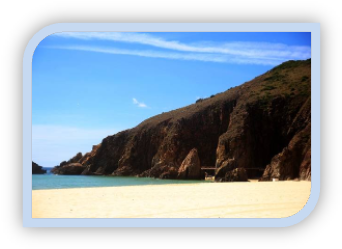đá núi kỳ vĩ và bãi cát vàng nguyên sơ.