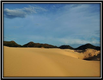 đây. Ở độ cao này, du khách tha hồ ngắm nhìn những triền cát với vân cát uốn lượn kéo dài cả cây số, những