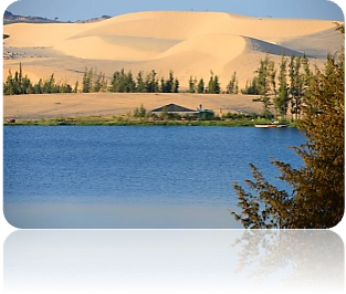 Nếu đến Phan Thiết, nhất định bạn phải đến Bàu Trắng, Bàu Sen. Đây là hai hồ nước ngọt thiên nhiên nằm giữa mấy đồi cát trắng mênh mông, cách Phan Thiết khoảng 60 km. Vào mùa hoa sen, ven hồ nở rộ lên một vùng rộng lớn tô điểm cho đồi cát trắng những sắc màu sặc sỡ. Bạn có thể thuê thuyền nhỏ dạo chơi trên mặt hồ, hái sen, câu cá và cảm nhận nét thơ mộng của hồ nước mênh mông giữa vùng cát trắng, ngắm hoàng hôn buông tuyệt đẹp trên hồ.